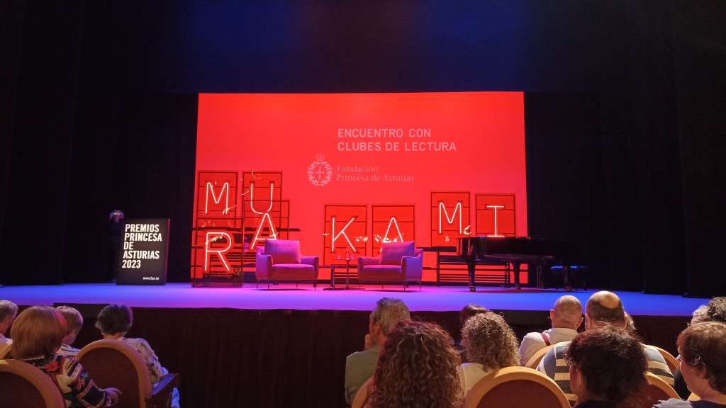 A las 19:30 horas de la tarde de ayer comenzó el Encuentro con Clubes de Lectura de Bibliotecas Públicas del galardonado con el Princesa de Asturias de las Letras 2023 en el Teatro Jovellanos de Gijón. La periodista de El País Berna González Harbour salió al escenario y, sin rodeos, presentó a un Haruki Murakami que, tras hacerse un poco de rogar, pisó las tablas ante mil lectoras y lectores.